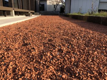 普通の砂利に比べて軽く多孔質なのです。歩くと音がしますので防犯対策にもなります。