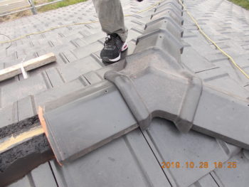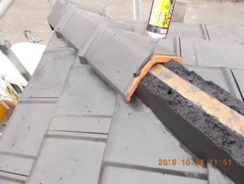隅棟などの切り合わせは特に慎重に施工します。またこの木材にビスで棟瓦を留め付けるので地震が来ても台風が来てもビクともしない屋根になります。