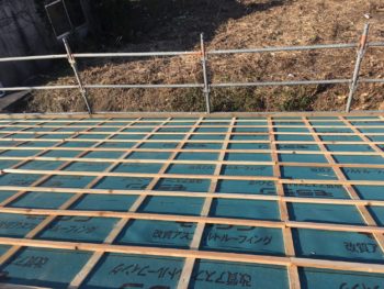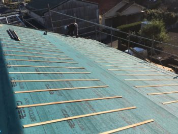 この様に瓦桟が縦桟によって浮きますので、台風などでもしも雨が吹込んでもルーフィングの上を雨が軒先まで流れて行ってくれますし、普段は通気も良いので結露防止になります。