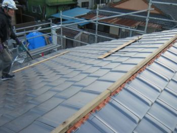 | 施工内容 | 縦桟施工、小屋裏換気施工、陶器平判防災瓦施工 |
