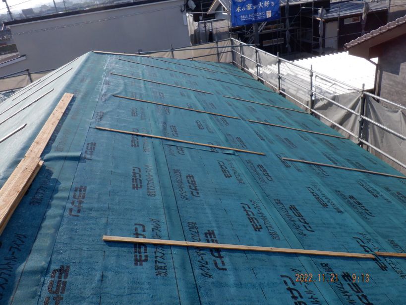 棟が上がると(家が建つ)まず最初に屋根工事です