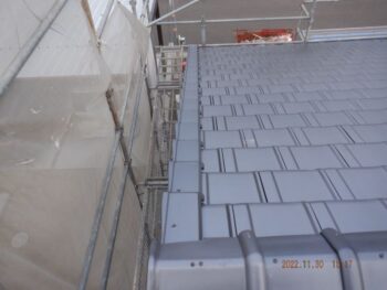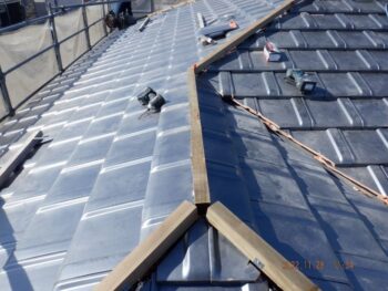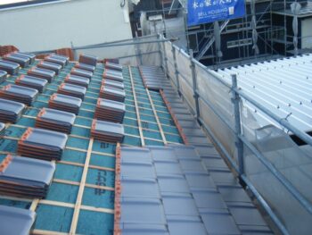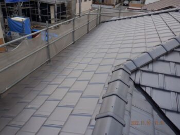 | 施工内容 | 縦桟施工、三州瓦 陶器平判防災瓦施工 |