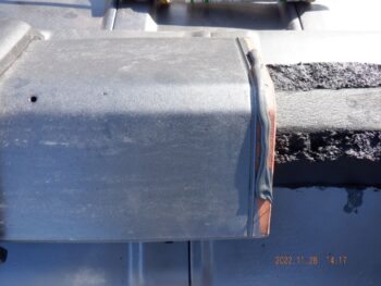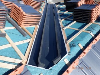以前は瓦を葺いた後に吹き込み防止で漆喰を塗っていましたが、最近ではシーラーを貼り付けます。