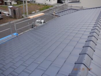 | お客様のご要望 | 指宿市 T様邸の新築工事の瓦工事をご依頼いただきました 陶器瓦の平判タイプ 銀黒色での施工でした |