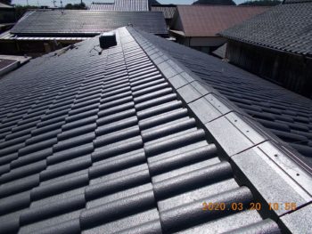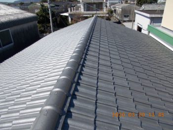 | 使用商材 | 自社(薩南工業)製 セメント瓦 ヨーロピアン 焼付塗装品 銀黒色 |