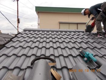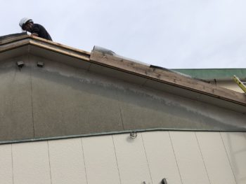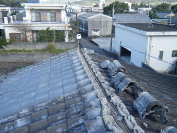さあ、既存の瓦を撤去していきます。年数が経ちモルタルの接着も完全に無くなっているので簡単に外れます。台風の時には持っていかれるかも知れなかったです。