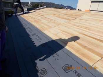 野地板を打ち、ゴムアスルーフィングを敷き込みます