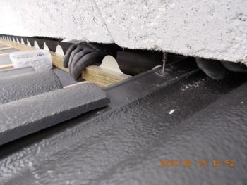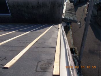 軒先は持ち上がることが無いように3点をビスで固定します。この現場は軒先部が隣の倉庫の中へ入っていたのでそこに潜り込みながらの作業でした(;^ω^)