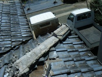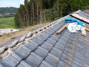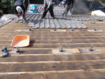 瓦と古い瓦桟木を撤去します