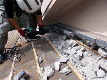 軒先のモルタルも次の瓦に合わせてカットします。
