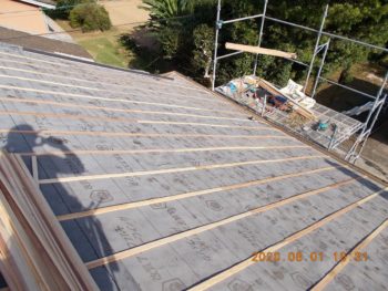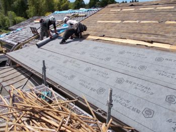 新しく下地のゴムアスルーフィングを敷いていきます