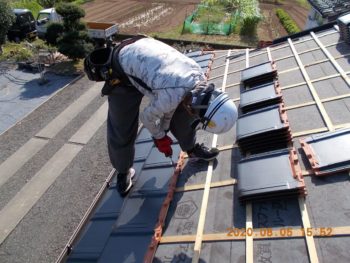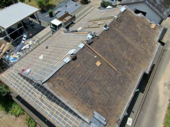 | 施工内容 | 太陽光発電撤去・古瓦撤去・野地板補修・ゴムアスルーフィング・縦桟施工・瓦施工・太陽光発電再施工 |
