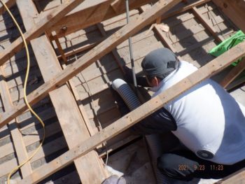 屋根裏に潜り丁寧に掃除機を掛けます