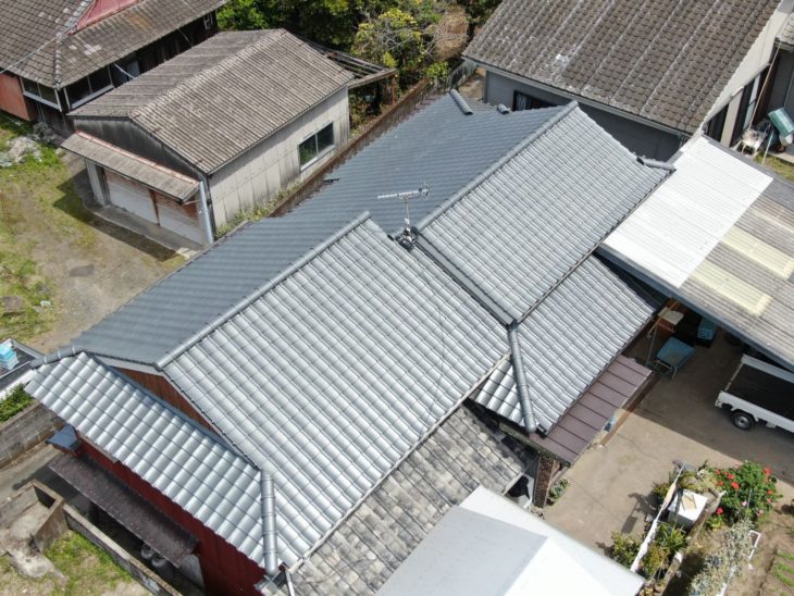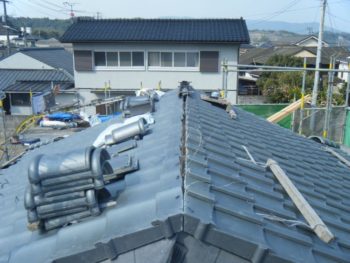 | お客様のご要望 | 古い日置瓦(いぶし瓦)で風向きや雨の量によっては所々雨漏りがするという事や今後の台風なども安心して過ごしたい。 |