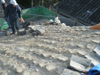 泥葺きの日置瓦で、いたるところの瓦がズレ落ちてきている状態でした