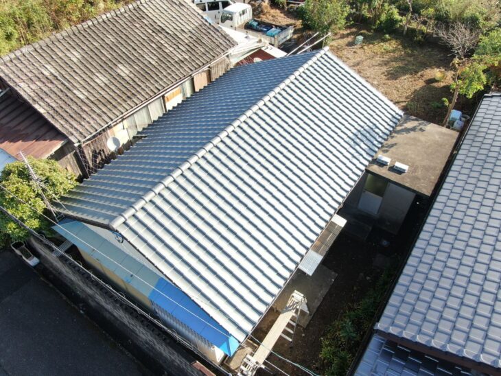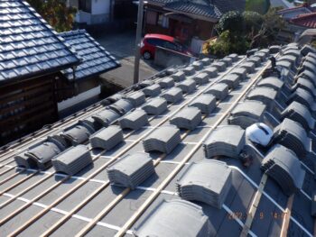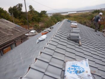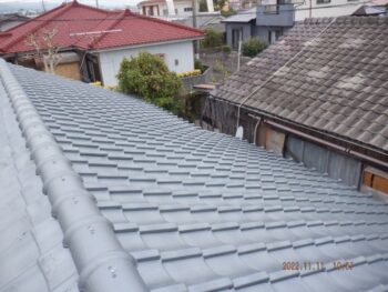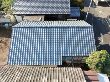 | 使用商材 | 薩南工業製 高圧プレス瓦 和型防災瓦 銀黒色 |