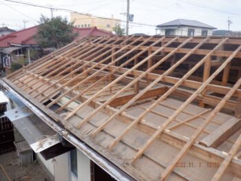 平木を留めていたノゴメを撤去し垂木だけの状態にします