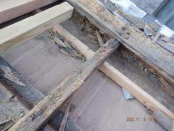 今回は腐食した部分を切り取り、横に新しい垂木を添えるように施工しました。
