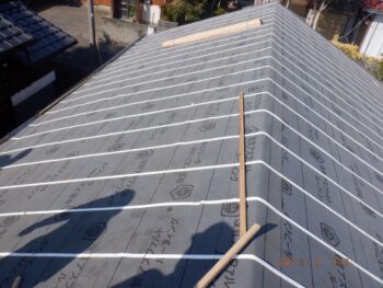 瓦桟が打ち終わったら瓦を屋根の上に上げます