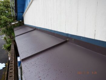 なるべく費用を抑えたいという事でしたので 弊社グループ薩南工業製造の高圧プレスセメント瓦 和型防災瓦の焼付塗装品で提案いたしました。 また、海沿いの家で板金の庇も傷んでおりましたので、一緒にやり替えをご提案いたしました。 |