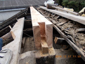 急遽大工さんにお願いして棟桁を交換してもらいました