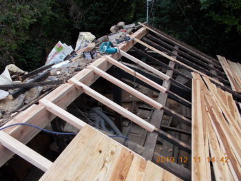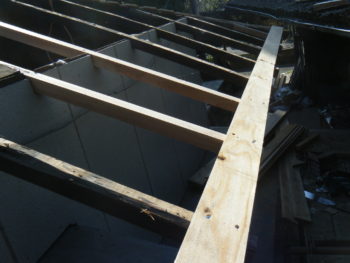 棟桁も交換し、垂木の調整を済ませたら野地板を打ち付けていきます