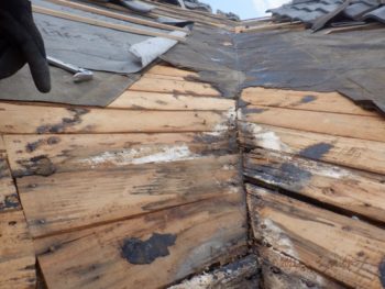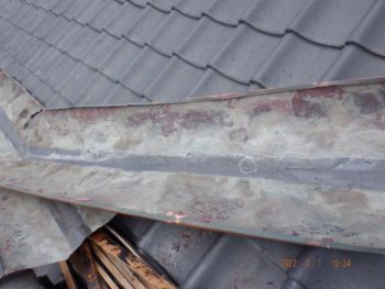 瓦を撤去して谷板金を確認してみると
