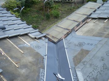 谷板金以外の所も瓦を交換しみましたが、雨漏りが止まらないので谷板金を交換する事にしてみました。 |