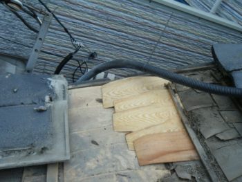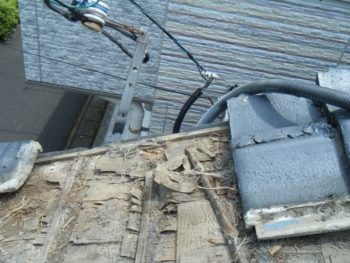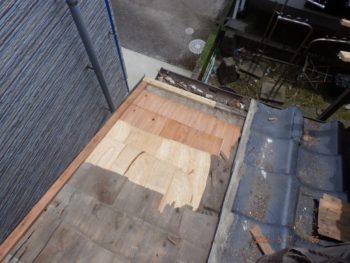 割れた瓦から雨が入って平木が腐ってました