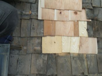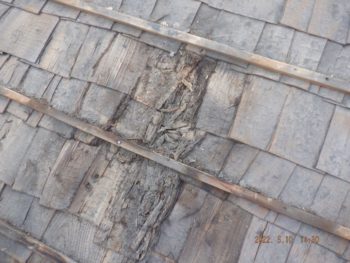 平木をめくると、、、あれ?野地板が、、昔は屋根裏の通気が悪くなるからと言って、野地板の上に平木を葺く工法もあったそうです。大工さんの知恵の自然換気工法ですね!