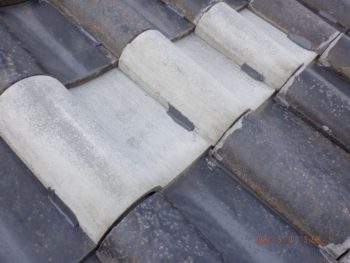 裏返すと分かります。少し割れてきています。職人さんが瓦をハンマーでちょっと叩くと音が違うのでヒビが入っているのが分かるのです。もちろん悪い瓦は交換します。